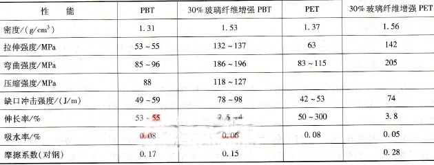 表3-21物理PBT和PET的機械性能