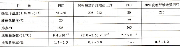 表3-22 PBT和PET的熱性能