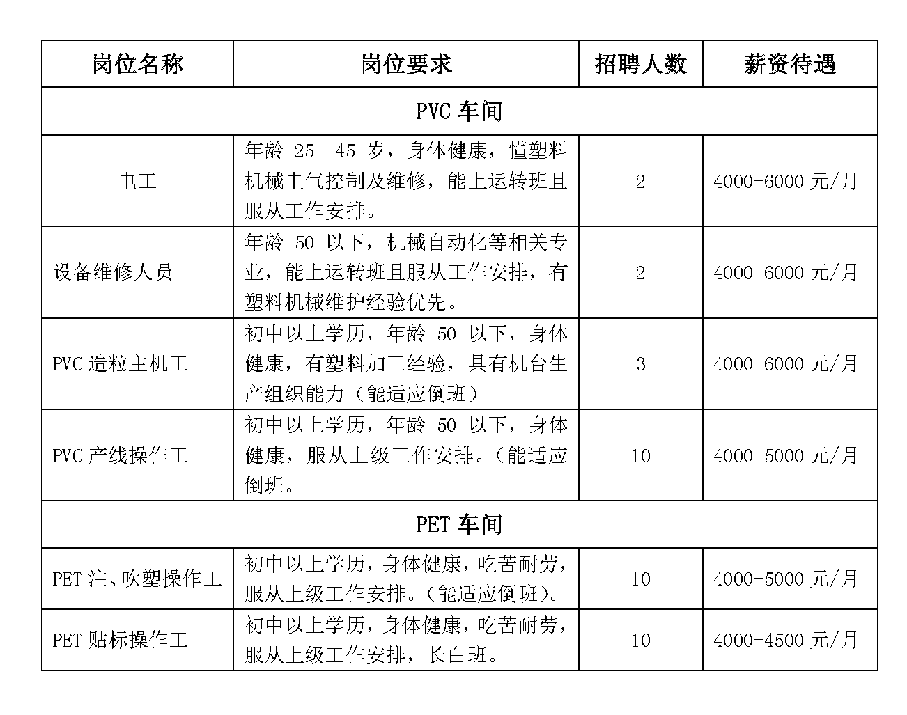 招聘崗位: